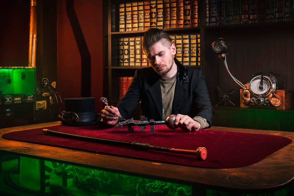 A fascinating escape room based on the story of a famous detective. There are a lot of non-standard mechanisms in the steampunk style (big keys, skulls, a bicycle, a piano, a railway and a lot of unusual things). The experience is perfect for both advanced and casual players. "